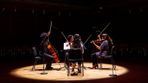 Our 2022 Solo(s) Together project concludes with a concert featuring a Boston ensemble that's making news nationally and a widely-acclaimed composer and musician with local ties. A quartet from Boston's Castle of our Skins artist collective -- a group of artists of all kinds dedicated to celebrating Black artistry through music -- performs contemporary works to include Music for Black People, No. 1 “Relentless” for four instrumentalists by Daniel Bernard Roumain, with short solos for each performers and a conclusion that brings all the performers together.
